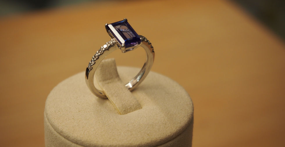 メインにはタンザナイトが使用されており、サイドにはダイヤモンドがあしらわれております。